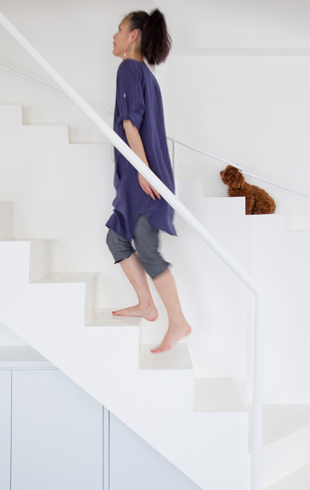 人間用の階段のすぐ隣に並列し階段が設置されているので、飼い主さんのペースに合わせてワンちゃんが昇り降りすることができます。