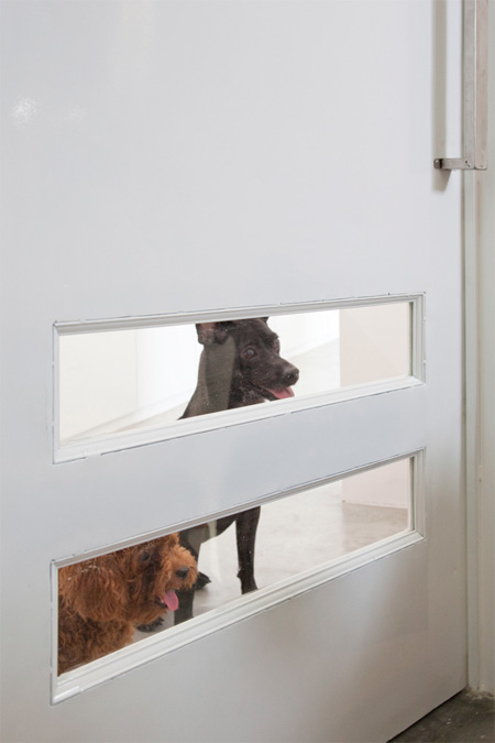 おっとワンちゃんが扉より出てきました。なんとワンちゃん専用の小さな出入り口もこの家にはあるようです。