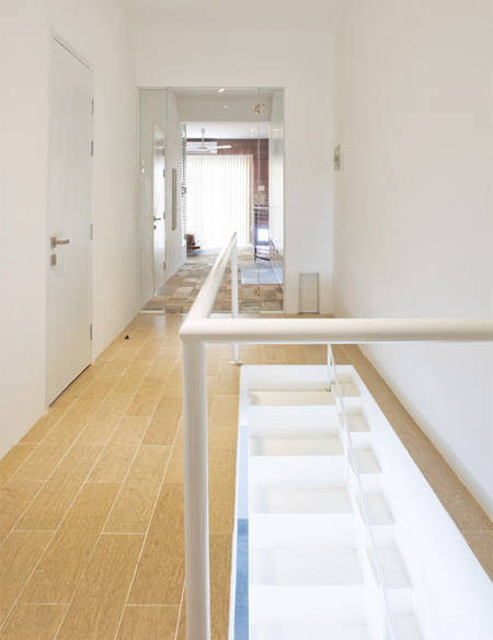 階段上から見るとこんな感じ。よくみると緩やかな階段をつくるためにリビングの奥の方からワンちゃん用の階段が設置されていることがわかります。