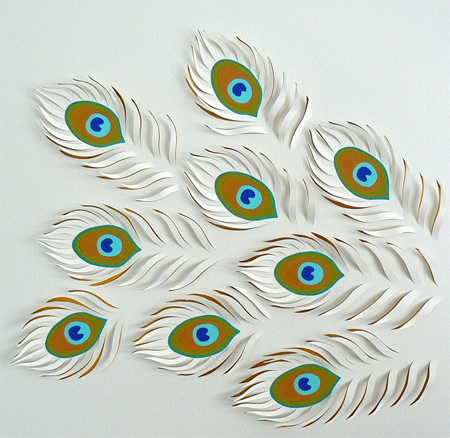 つづいてこちらはクジャクの羽。立体的なペーパーアートはまるで本物の羽のようにさえ思えます。
