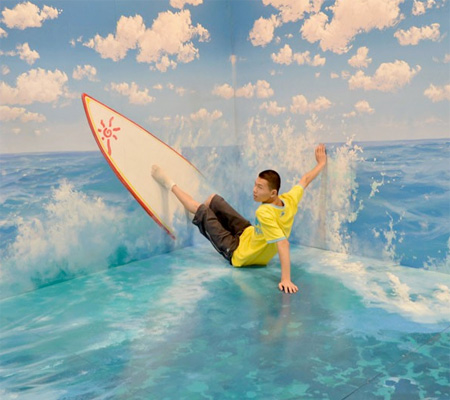 上手にサーフィンをしているかのような描写。こちらももちろんトリックアート。