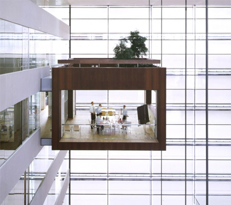 schmidt hammer lassen architects – frontpage(https://www.toxel.com/inspiration/2012/03/07/suspended-meeting-rooms/)