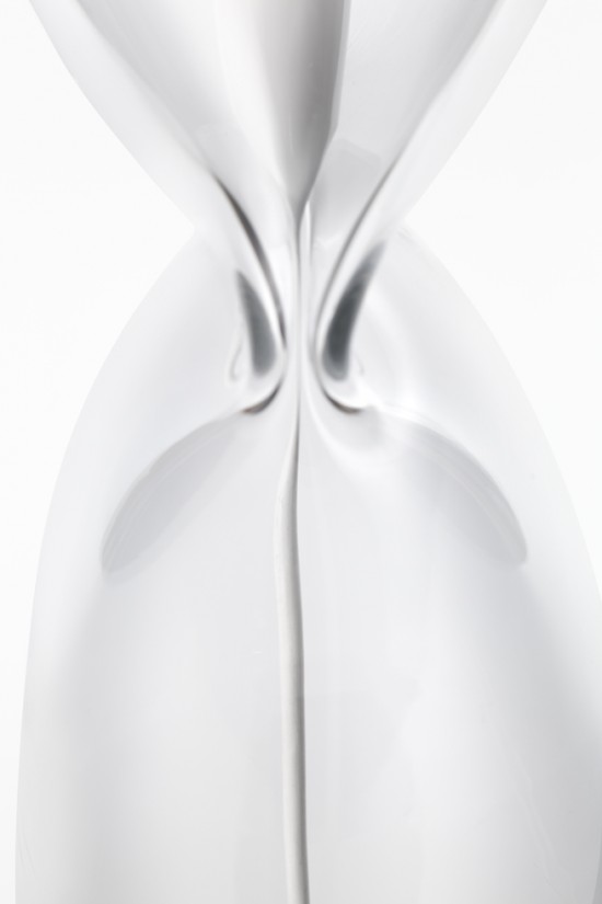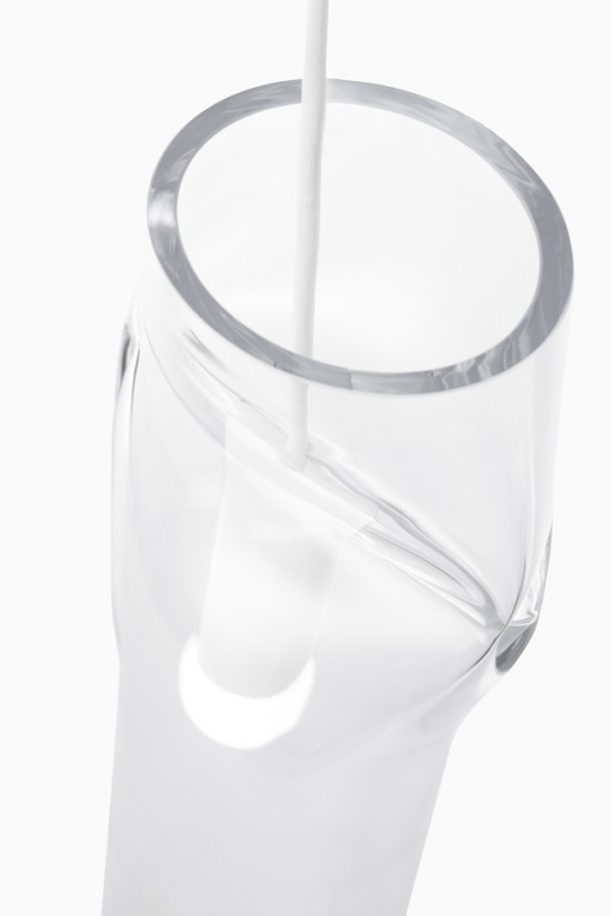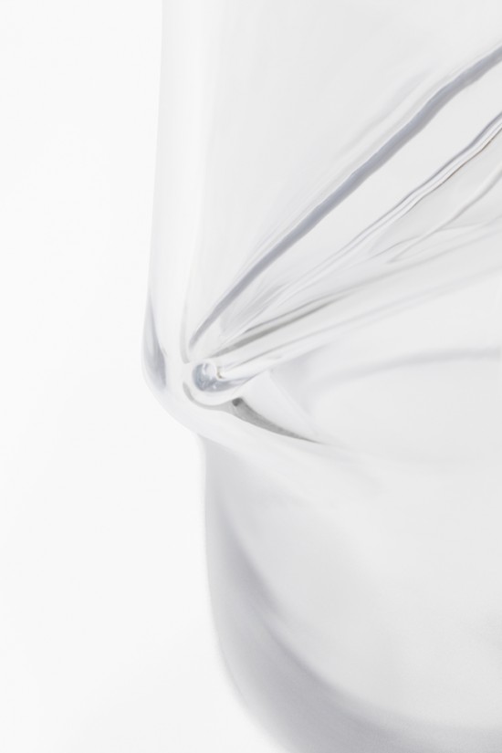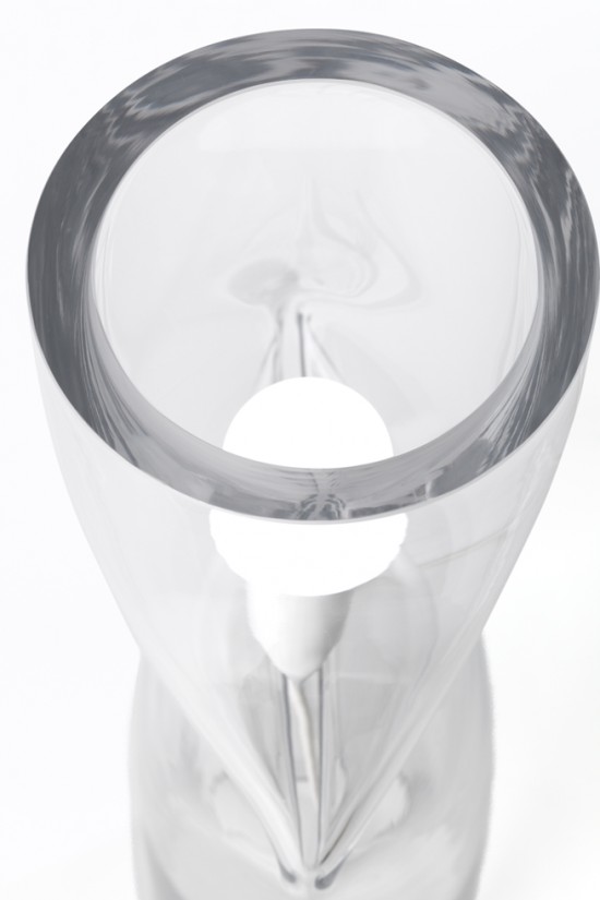 そして出来上がったのがこちら「press lamp」。ガラス状の筒の一部をただつまんだように凹ませただけなのに、なぜかガラス特有の独特な緊張感が漂ってくる作品となっています。