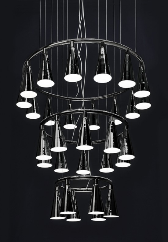 逆さまにぶら下がって休むコウモリの群れにインスパイアされてデザインされたシャンデリア「bat」