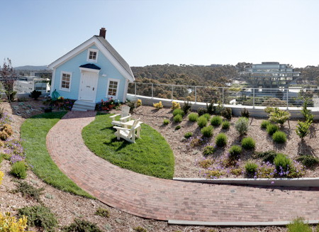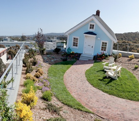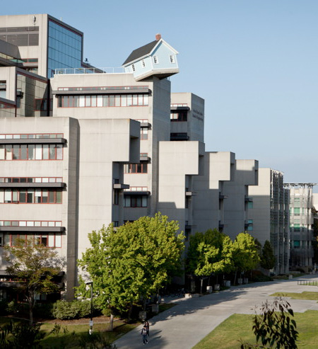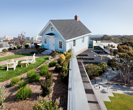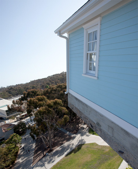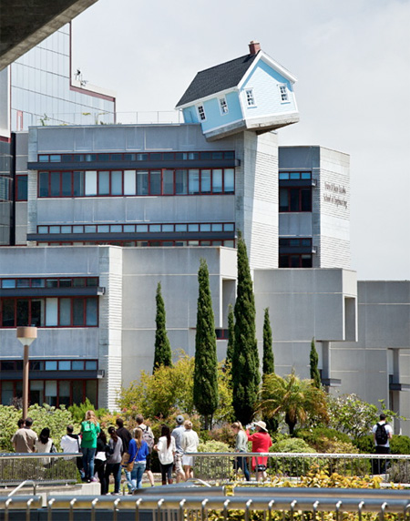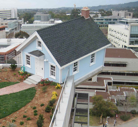 まるでどこかから家が飛んできたかのような佇まいでFallen Starは、Jacobs School of Engineeringの大学内のキャンパス屋上に存在しています。