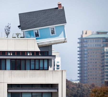 実際にここに住んでみたいような・・・でも絶えず、いつこの家がビルから落ちてしまうのか・・・びくびくと心配し、安心して住むことができないかもしれません。