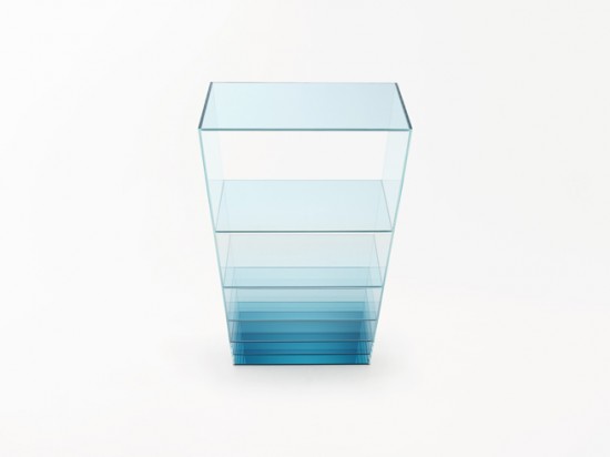 そんなイタリアの老舗ガラスメーカー「GLAS ITALIA(グラスイタリア)」と佐藤オオキ氏率いる日本のデザイン事務所nendoがコラボレーションすることにより出来た作品が今回紹介する 深海のような奥行き感をもつ棚「deep-sea」。
