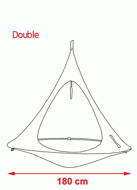 続いて「double」と呼ばれるこのハンモック型のテントは幅は180センチメートル、高さは2.55メートル、耐荷重は200キロ。