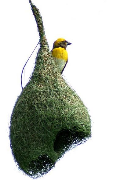 上の写真が夫妻が感動したウィーバー鳥とその巣。