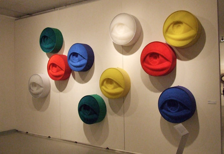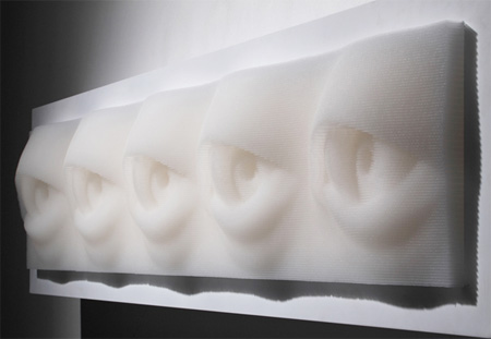 たくさんのストローで出来た、瞳の彫刻。