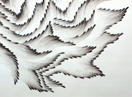 アップしてみるとこんな感じ。指で描いていると言われなければわかりませんが、いわれてみれば確かにしっかりと指で描かれていることがわかります。色の濃いところが指先です。