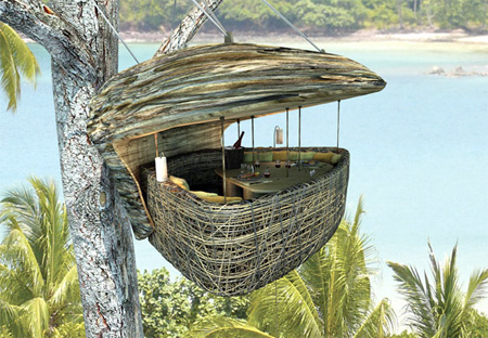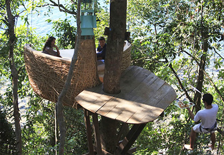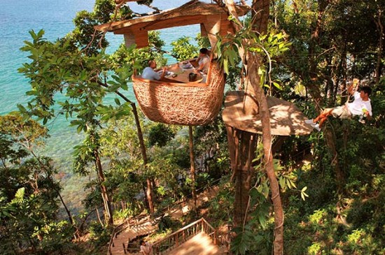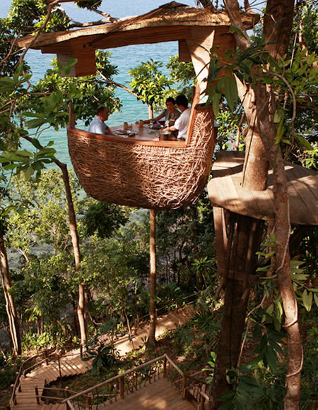 上の写真が実際の鳥の巣のレストランTreepod Dining。タイのSoneva Kiriにある絶景を楽しむことが出来るレストランです。ちなみに、このレストランに使われているメインの素材は竹だそうです。