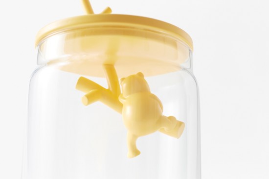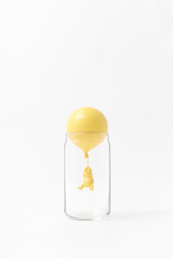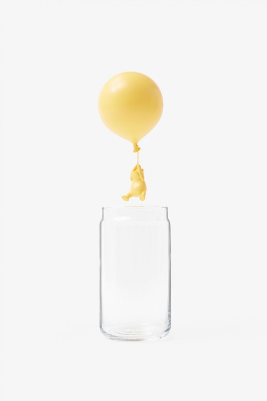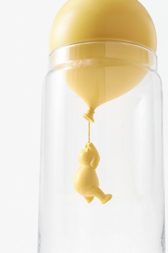 グラスの蓋を取ると、プーさんがまるで風船でとばされたかのよう。