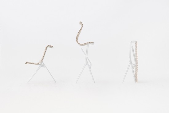 すだれと椅子を融合させて出来た、すだれにも椅子にもなる椅子「sudare」
