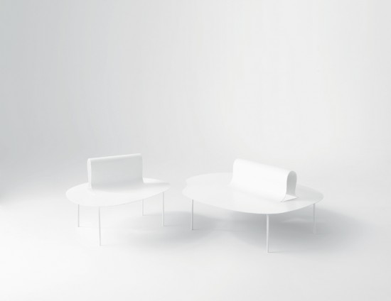 上の写真はベンチの一部がめくれて背もたれになったもの。白い色とシンプルなデザインがより柔らかさを増幅させていることがよくわかります。