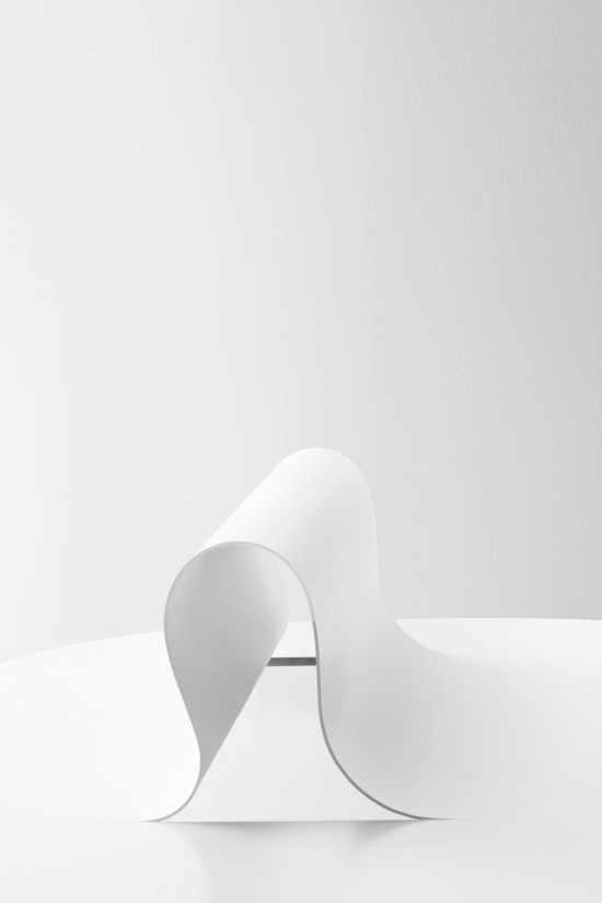 厚さ5ミリの極薄合板を使用してつくった風を孕んでゆらめく布のようなフォルムのスツール「 wind」 | ONE PROJECT