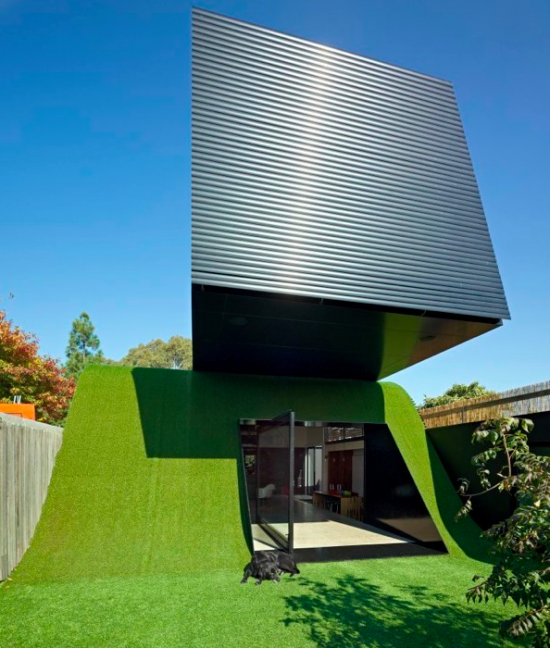 メルボルンに建てられた建物なのですが、中庭と外壁に芝生が敷き詰められたグリーンな住居となっています。