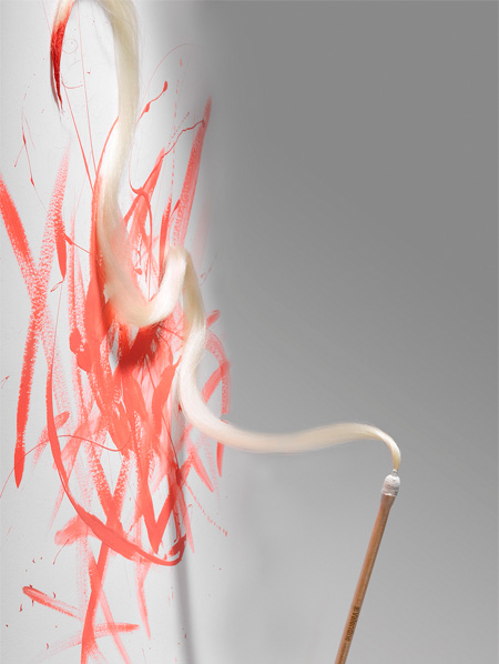 鞭のように叩き付けることで描くことの出来るブラシ。ストレス解消にもなります。