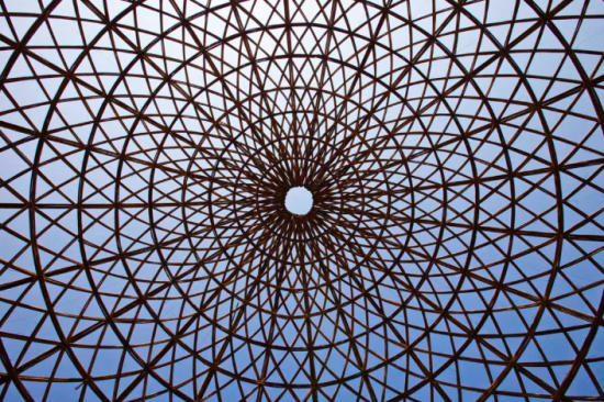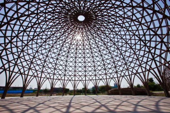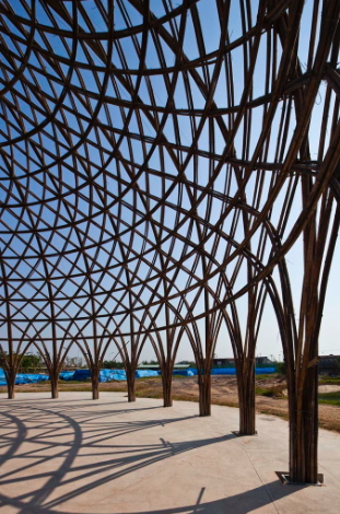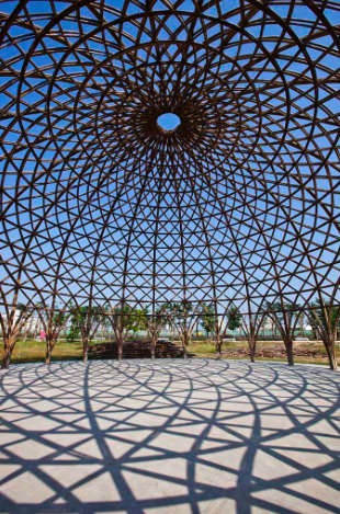ドームの中に入ると、その竹の隙間から覗き込む太陽がとても明るく、ホール全体を照らし出します。