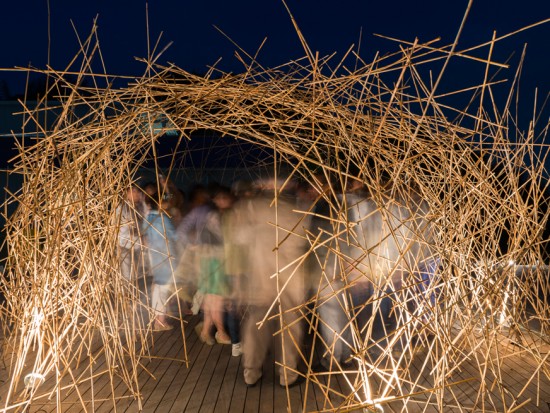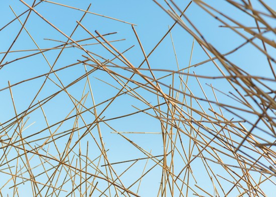 公式ホームページによると、そのつくり方は、最初に葦で作った6面のパネルを用意し、それを前後左右上部と組立てていきパネル同士を葦でジョイントしていくことで建てられたそう。単体ではすぐに倒れてしまうようですが。お互いを支え合うことで自律する空間が生まれたのだそう。