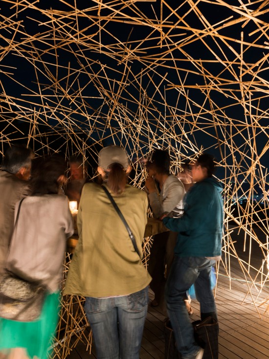 こちらは二回目の「葦BAR」。今回の「葦BAR」は制作空間に”システム”取り入れることにより、家型の(切り妻屋根)を思い浮かべる屋台としておでんを提供する空間を考えたそうです。