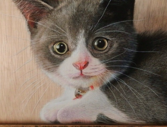 まずはこちらの作品から。まるで本物の猫のように見えますが、もちろんこれは絵。全て色鉛筆を使って描かれています。