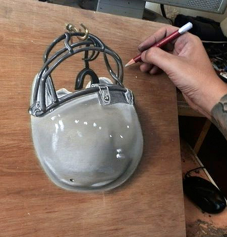 どこからどうみても本物にしかみえない机に描かれたリアルな絵があります。