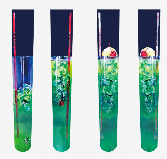 前から見るとこんな感じ。クリームソーダのアイスクリームが膝下辺りに位置しています。きちんと絶対領域も表現されています。またストローがいいアクセントになっていますね。