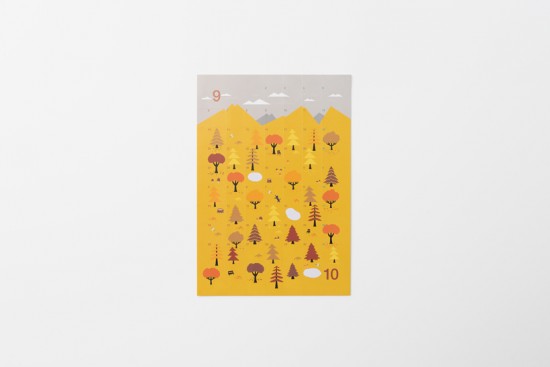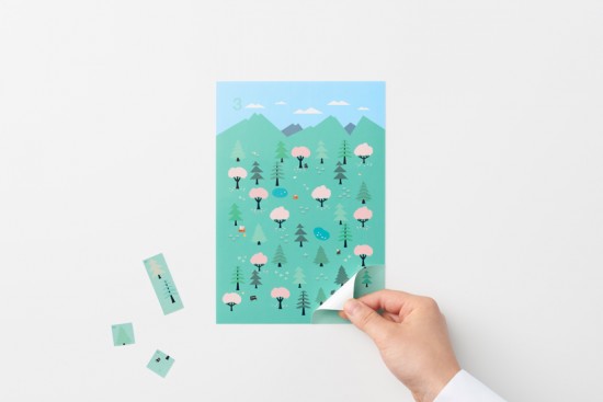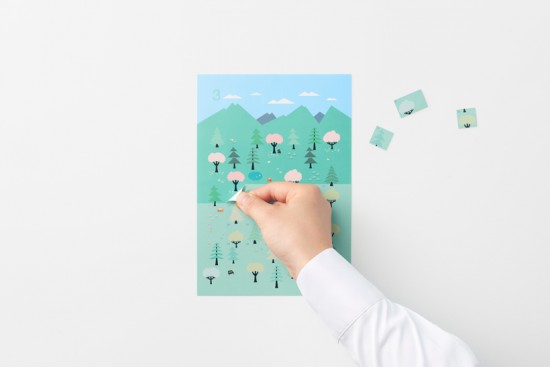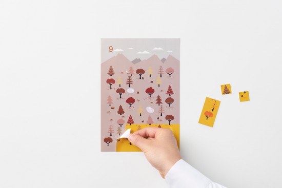 佐藤オオキ氏のnendo(ネンド)がデザインしたカレンダーなのですが、毎日一枚ずつシールを剥がしていくことで台紙に描かれた「次の季節」の風景が徐々に現れるという工夫が施されています。