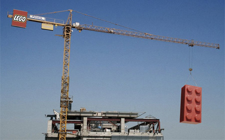 最後にレゴのクレーン。これはチリのレゴブロックの広告らしいのですが、巨大なクレーンが巨大な赤いレゴブロックを吊るし上げています。