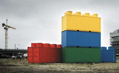 荷物運搬用のコンテナがそのままレゴブロックに。それにしても大きなレゴブロックですね。