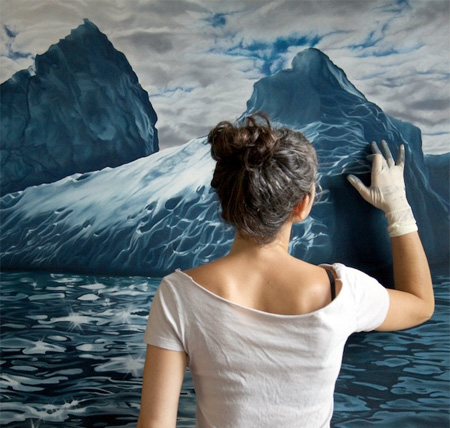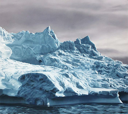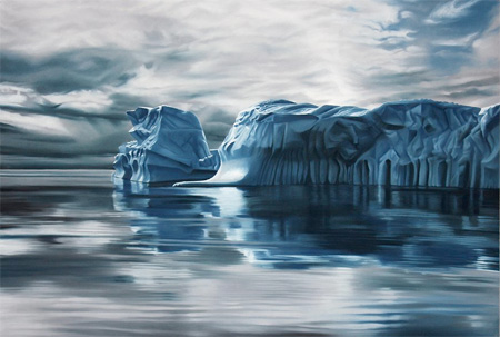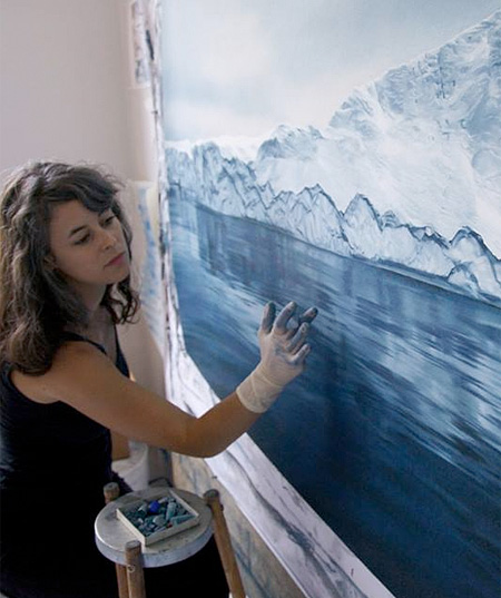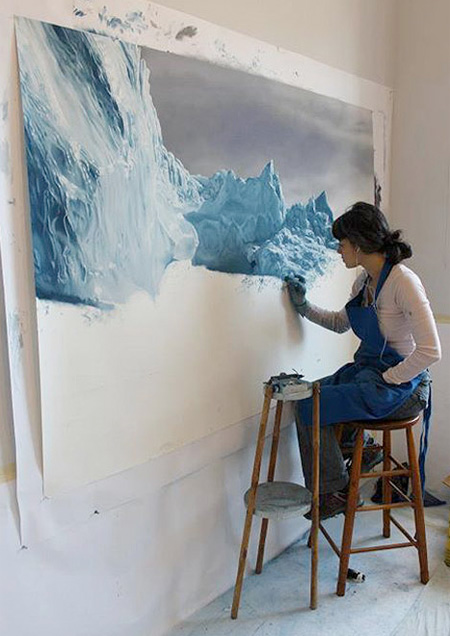 上の氷山を描いていました。一見すると写真にしか見えませんがこれはフィンガーアーティストZaria Forman氏が描いた絵です。