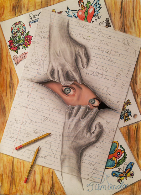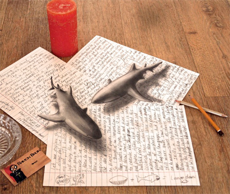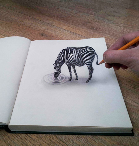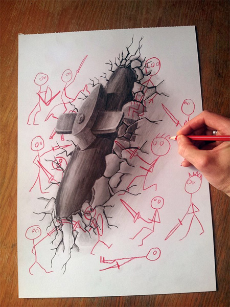 ・永井秀幸氏がスケッチブックを使って描いた紙から飛び出したように立体的に見える3Dアート | ONE PROJECT