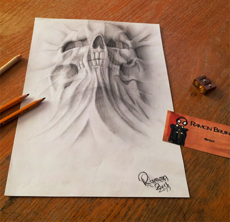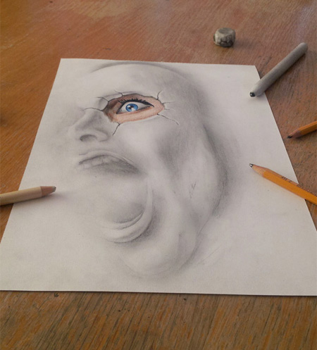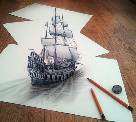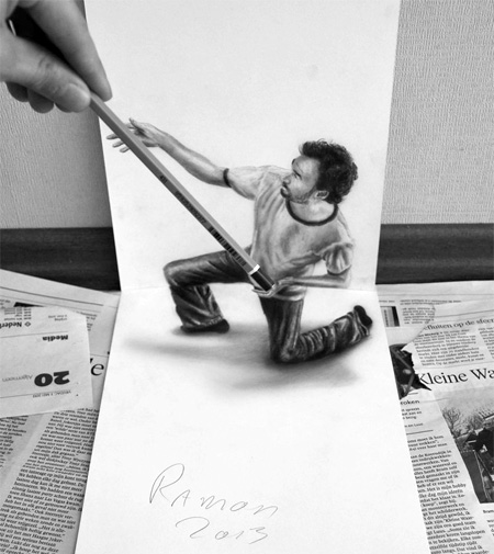 オランダ人のフリーランスのアーティストRamon Bruin氏により、紙に描かれたのは立体的にみえる3Dアート。