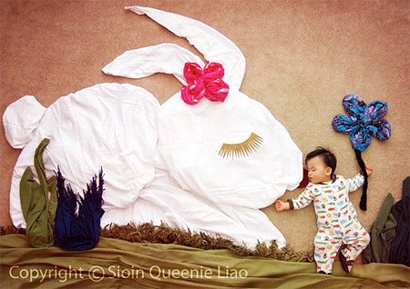 今回紹介する寝相アートは、カリフォルニアをベースに活動しているアーティストSioin Queenie Liao(http://wengenninwonderland.com)氏の息子Wengenn君に様々な衣服を着せることで、可愛らしい写真に仕上がっています。