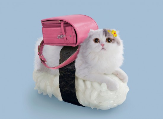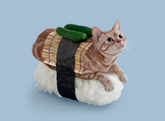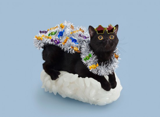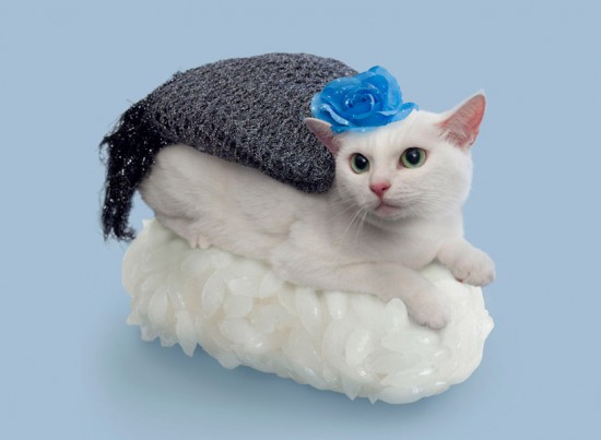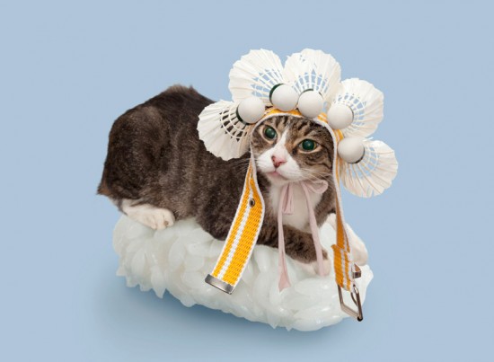 felines dress up with seaweed and rice for sushi cats series