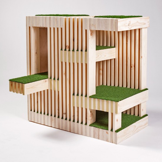 最後に紹介するのはこちら。あらゆる方向に滑り台のようなものがついているネコの為のお家。