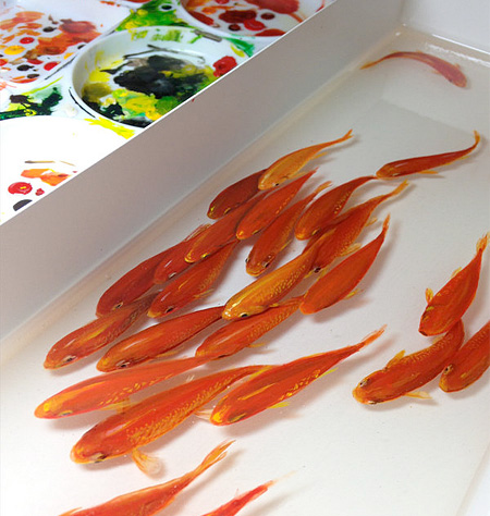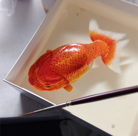 ・金魚絵師、深堀隆介さんが描くアクリル絵の具とエボキシ樹脂を流し込むことで描かれた、まるで生きているかのような金魚の絵。 | ONE PROJECT