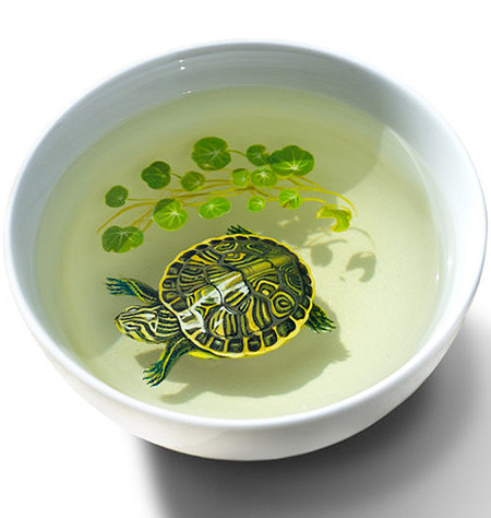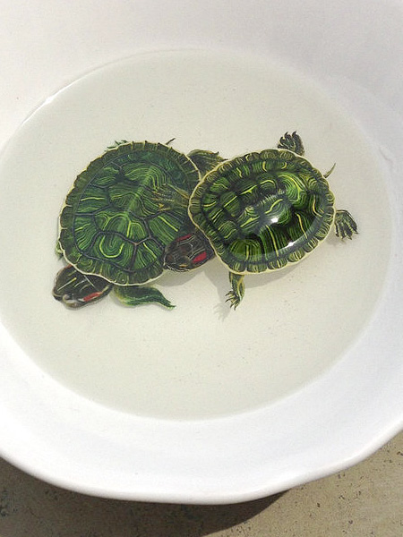 例えばこちらの亀。深堀隆介氏の作品と同じ技法を使い、非常に可愛らしい亀が描かれています。