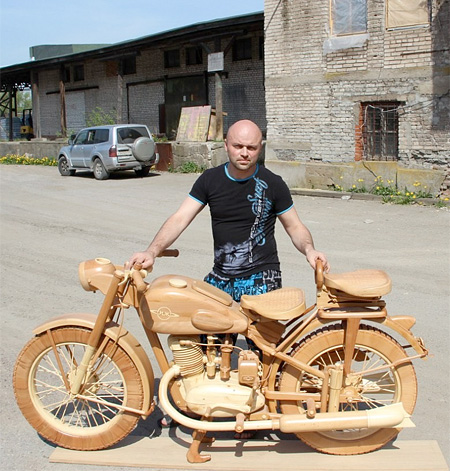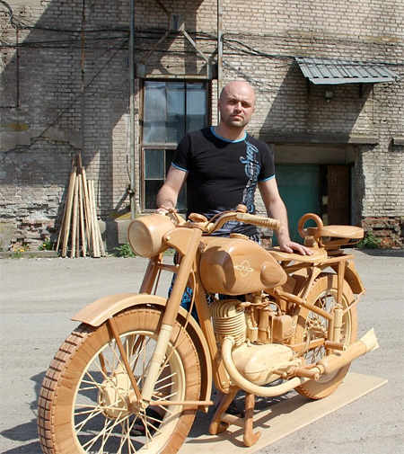 この木で出来たバイクを作成したのはロシアのアーティストYuri Hvtisishvili氏。もちろんエンジンに至るまで全て木製なので実際に走ることはありませんがとっても素敵なバイクであることには間違いありません。