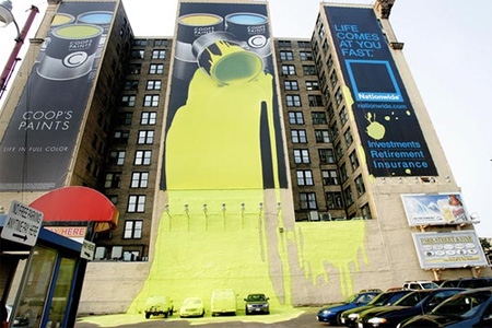 Coops Paintの広告。ビルからペンキが漏れてしまっています。