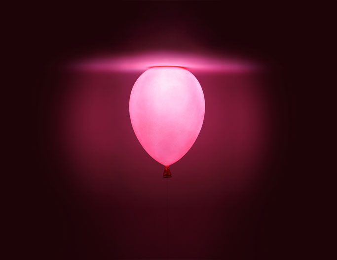 天井で行き場を無くしてしまった風船が光る照明「Balloon Lamp」
