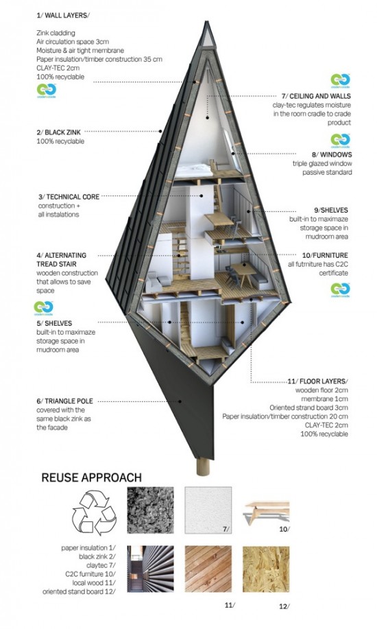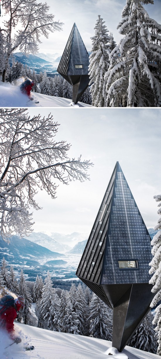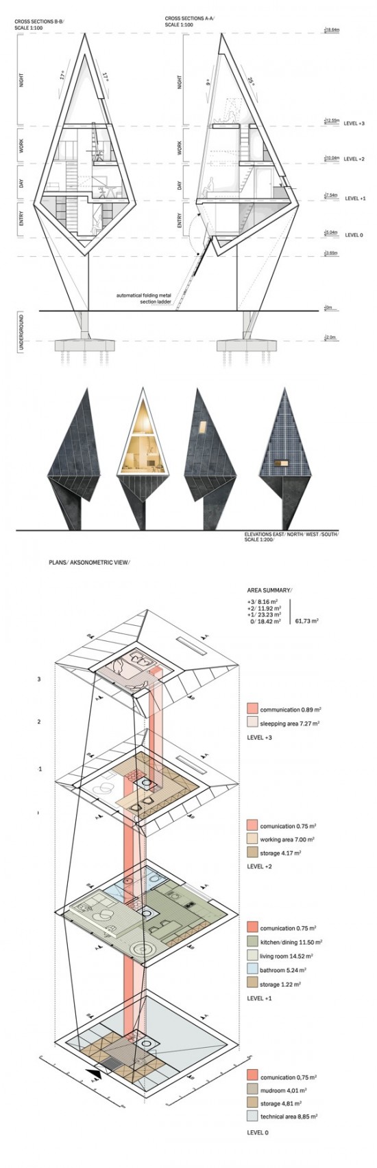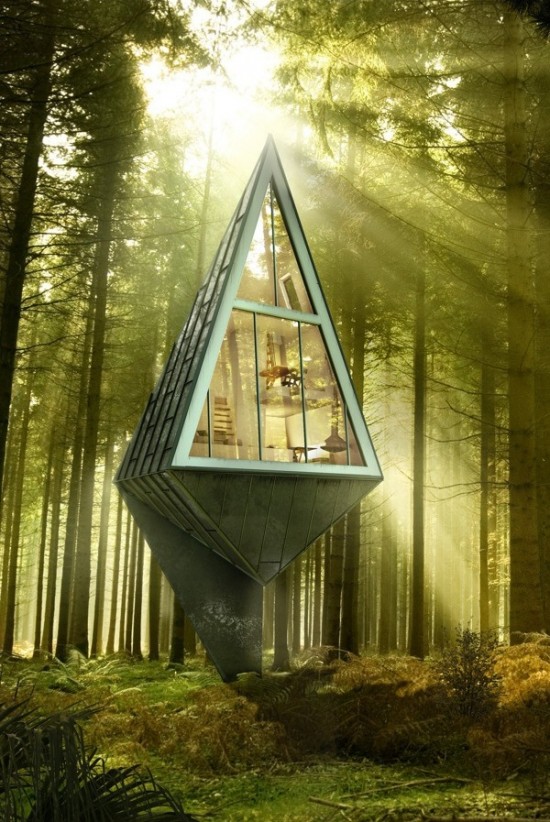 住居自体を大きな一本の木と同等のサイズにとどめながら、木々が太陽の光を浴びるようにソーラーシステムでエネルギーを作り出すという、完全エコ仕様の建築デザイン となっているよう。