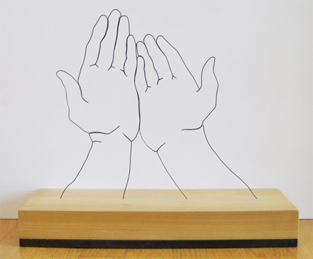 二つの手がとっても立体的にスチールワイヤーによって形作られています。線がとっても美しい作品に仕上がっています。