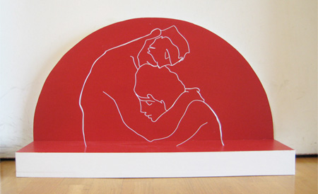 こちらは斜めから見たよりそう男女。横から見てもまた違った感じにみえますね。見る角度によって見え方が違う、素敵な作品ですね。
