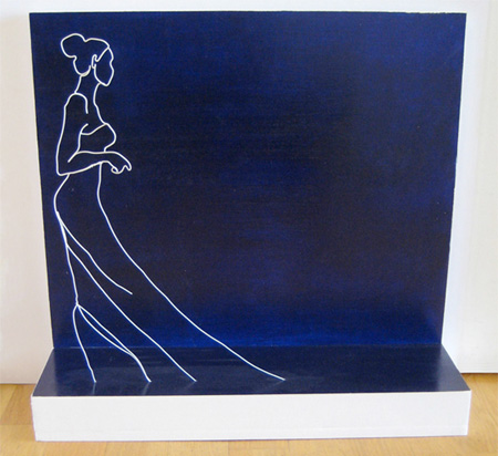 ワイヤーと女性の後ろ姿と言う2つの素材が相まって非常に素敵な作品になっています。