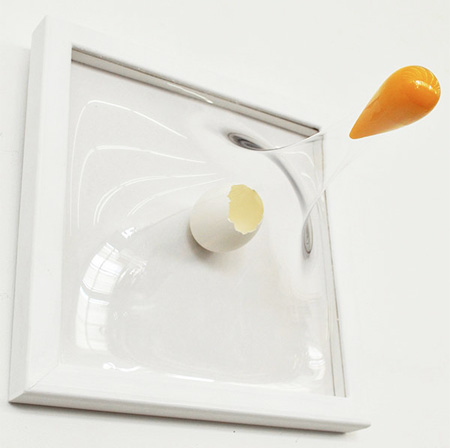 まずはこちらの作品から。なんと卵が絵から立体的に浮き出てしまっています。