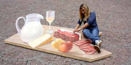 まずは路上で大きなベーコンを食べている女性・・・とおもいきや路上に描かれたトリックアートでした。