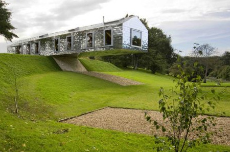 この家の外壁はステンレススチール、それに合板でつくられているの出そう。