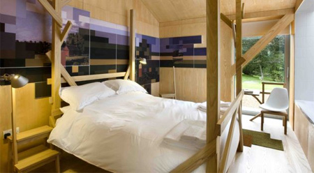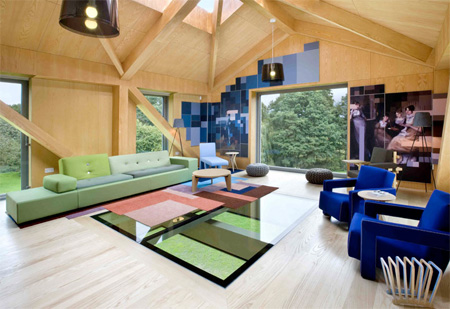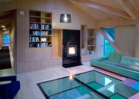 でも中は以外とオシャレ。上の写真のリビングルームはちょうど空中に浮いた部分の先っぽの部分。ガラスで下が丸見えという・・・さらにぞっとするような、怖さを増幅させるつくりの家となっています。